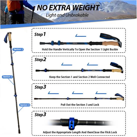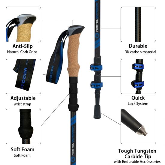 Bâton de randonnée rétractable antichoc à prix d'usine OEM , bâtons de randonnée en fibre de carbone , bâton de randonnée