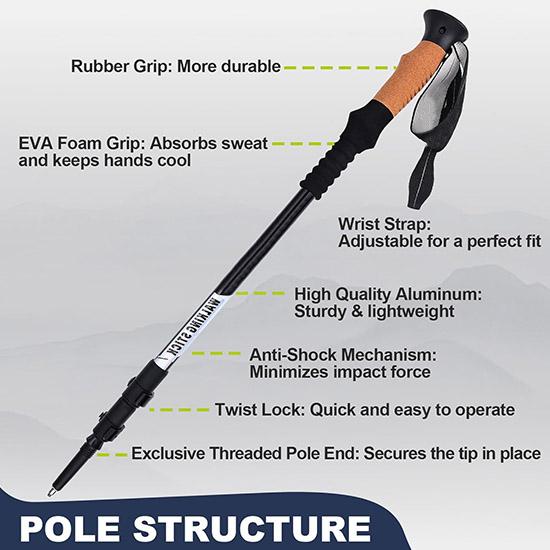 léger : chacun randonnée en aluminium le bâton ne pèse que 294 g (10 . 4 oz) ,, ce qui le rend idéal pour la randonnée en tant que canne tout au long de la journéey.