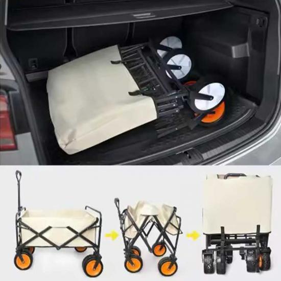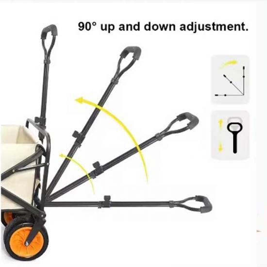 Marque : ANHUI FEITEL USINE Fabrication liée : OEM et ODM Produit : Chariot de jardin de camping pliant robuste avec roues universelles, poignée réglable et rangement compact. Idéal pour divers terrains et transport facile de charges lourdes.