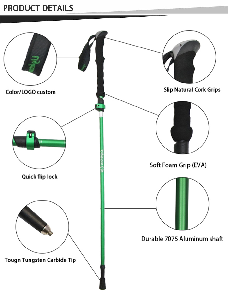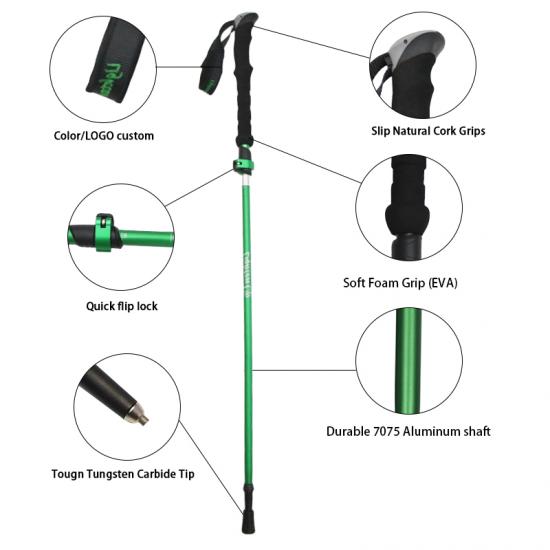 ce bâton de trekking est fabriqué en alliage d'aluminium 7075, qui est résistant à la corrosion et plus léger que les autres matériaux.