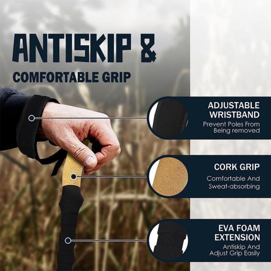 [compact et adapté aux voyages les bâtons de trekking peuvent être facilement rangés dans les bagages, sacs à dos et sacs polochons. ce bâton de trekking est également livré avec un protecteur de pointe en caoutchouc facile à ranger, connecteur de poteau et panier de boue. [modèle nouveau et amélioré ! les bâtons de course-trekking sont livrés avec des sangles rembourrées pour un maximum de confort et une prise en main ergonomique. il n'y a pas besoin de s'inquiéter de la chute du bâton de trekking.