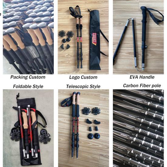 Bâton de randonnée rétractable antichoc à prix d'usine OEM , bâtons de randonnée en fibre de carbone , bâton de randonnée