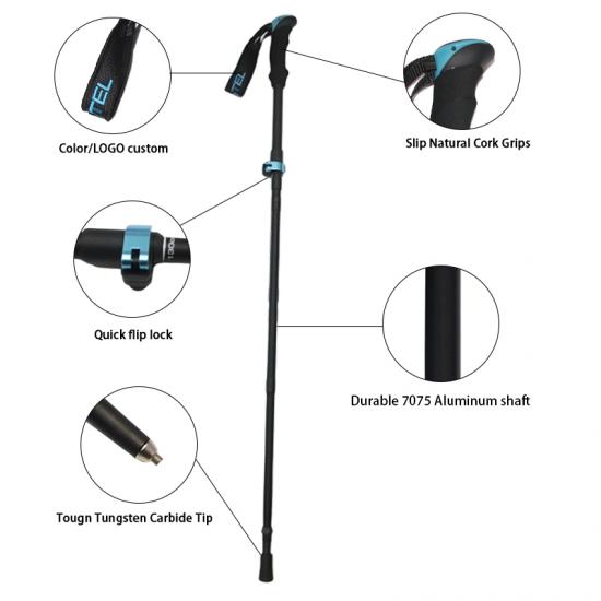 ce bâton de trekking est fabriqué en alliage d'aluminium 7075, qui est résistant à la corrosion et plus léger que les autres matériaux.