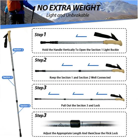 [compact et adapté aux voyages les bâtons de trekking peuvent être facilement rangés dans les bagages, sacs à dos et sacs polochons. ce bâton de trekking est également livré avec un protecteur de pointe en caoutchouc facile à ranger, connecteur de poteau et panier de boue. [modèle nouveau et amélioré ! les bâtons de course-trekking sont livrés avec des sangles rembourrées pour un maximum de confort et une prise en main ergonomique. il n'y a pas besoin de s'inquiéter de la chute du bâton de trekking.