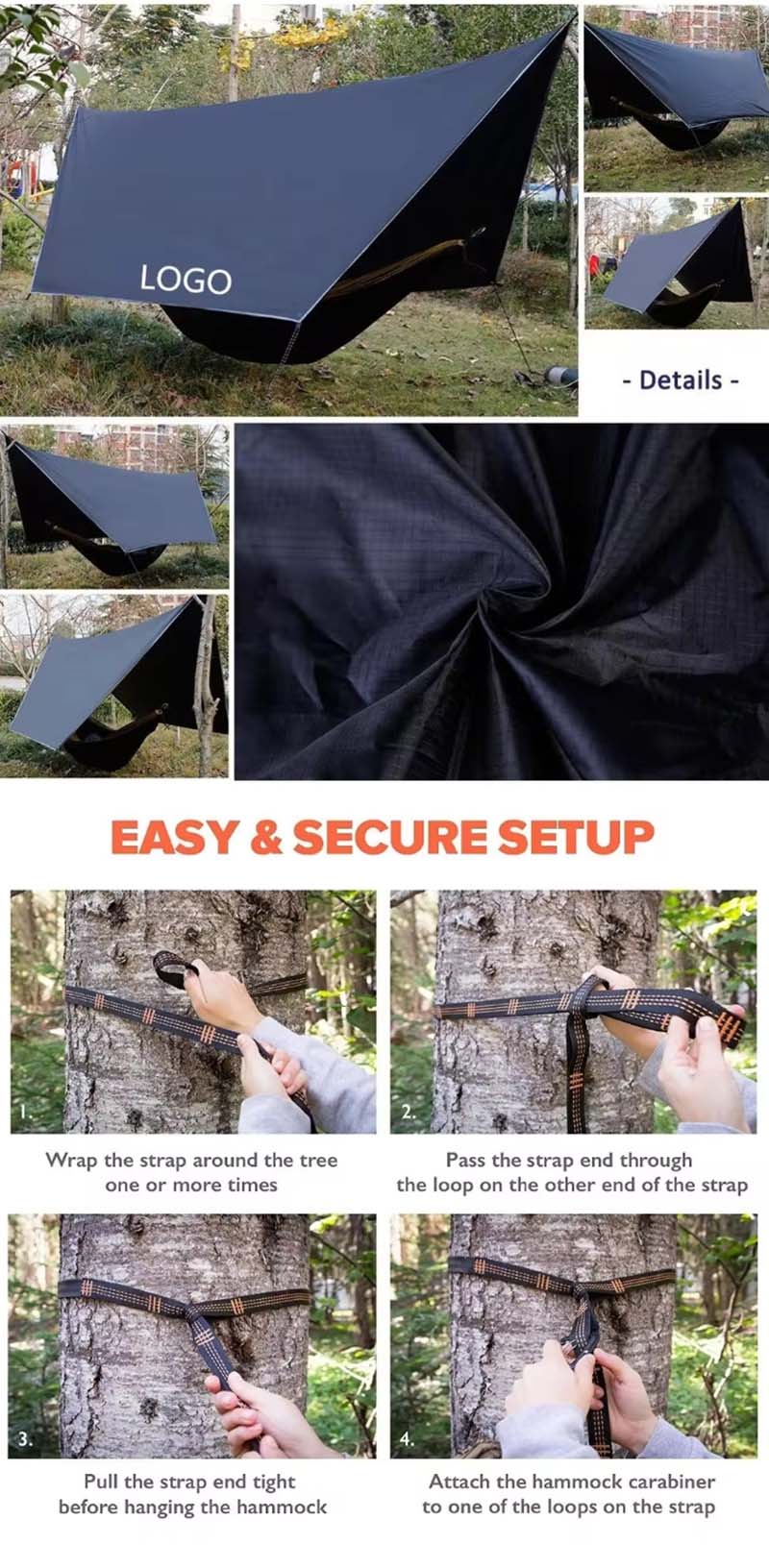 couverture maximale Facile à installer au sol et sur le hamac pour se protéger du vent et de la pluie.
