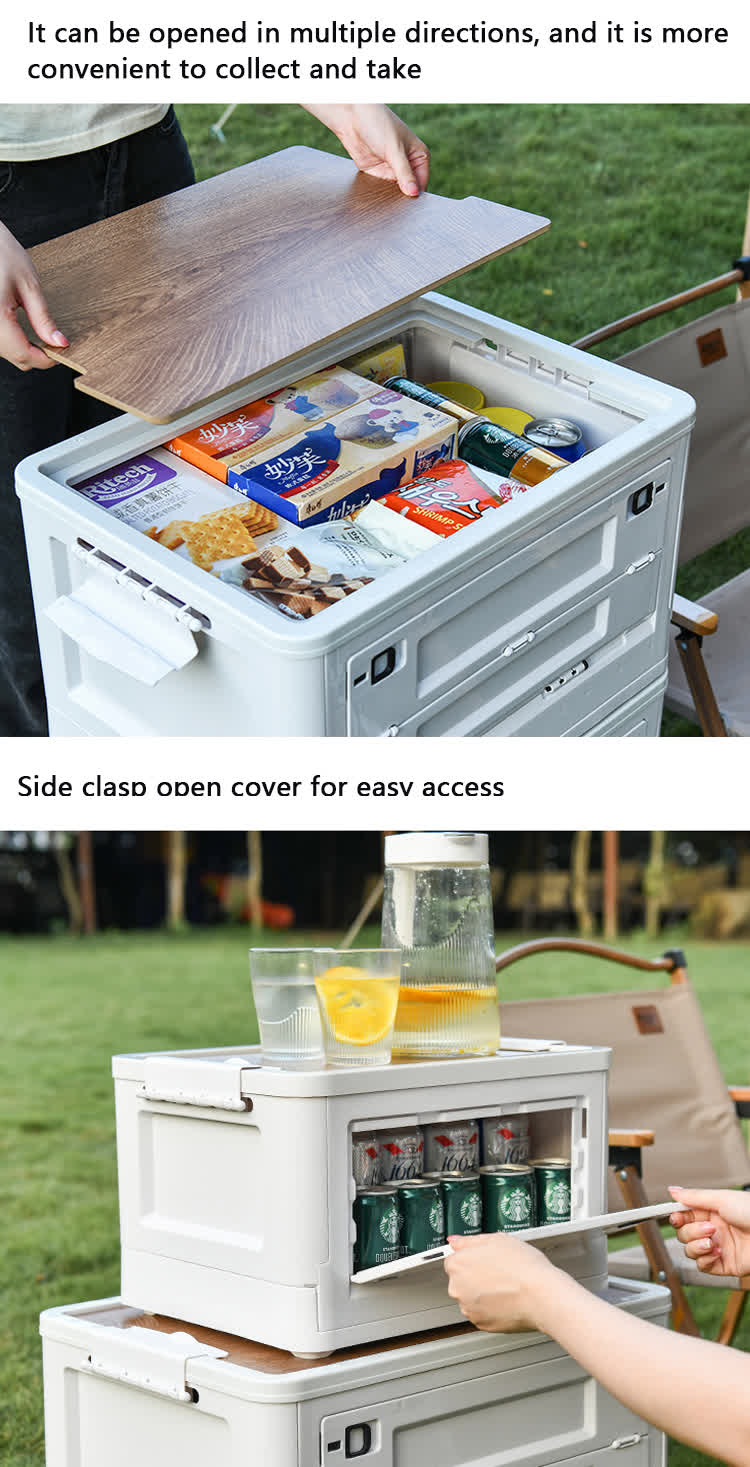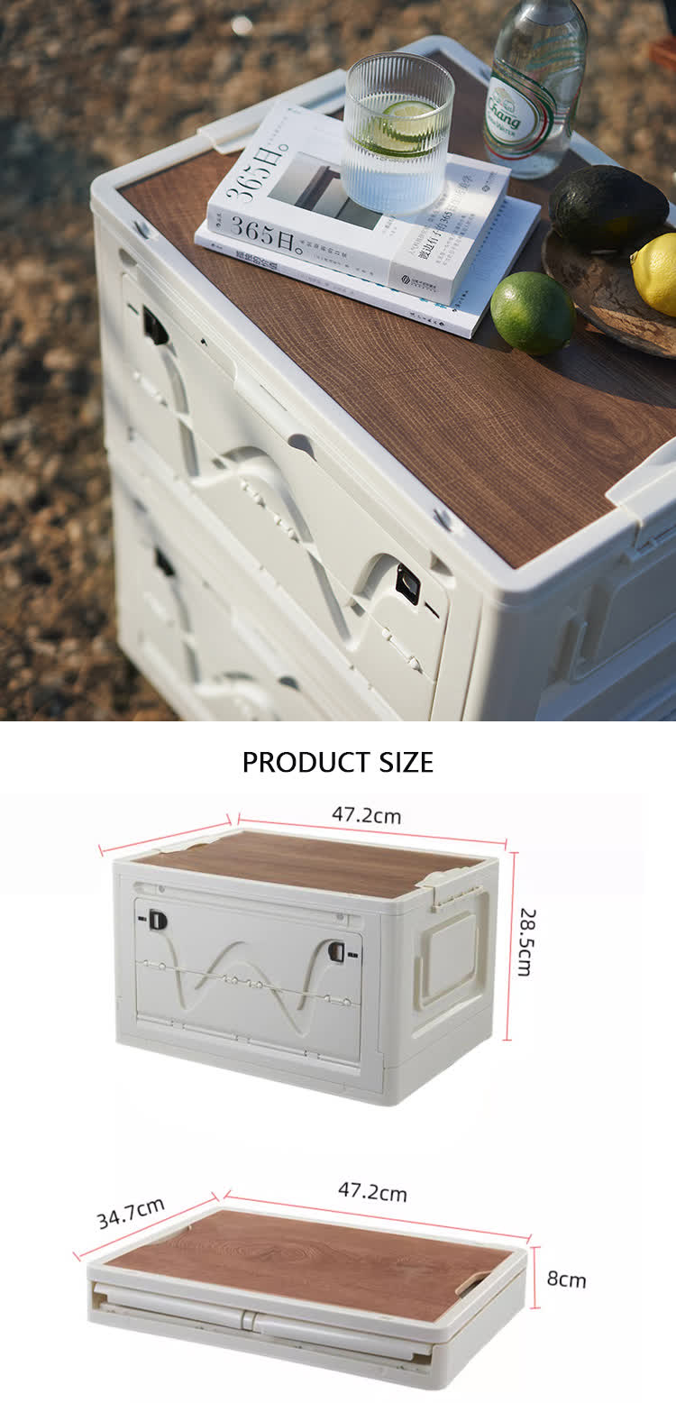 Bac de rangement pliable avec couvercles en bois, caisses, fourre-tout en plastique, boîte de rangement pour l'extérieur