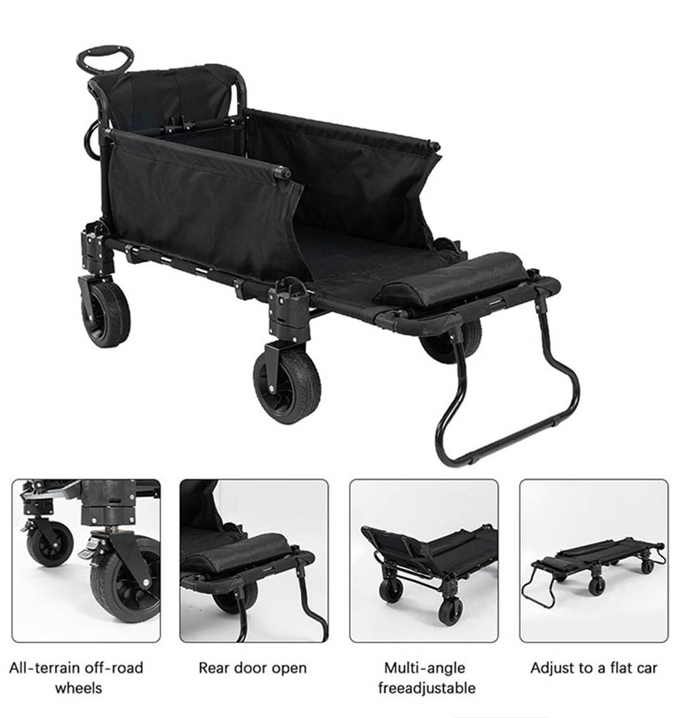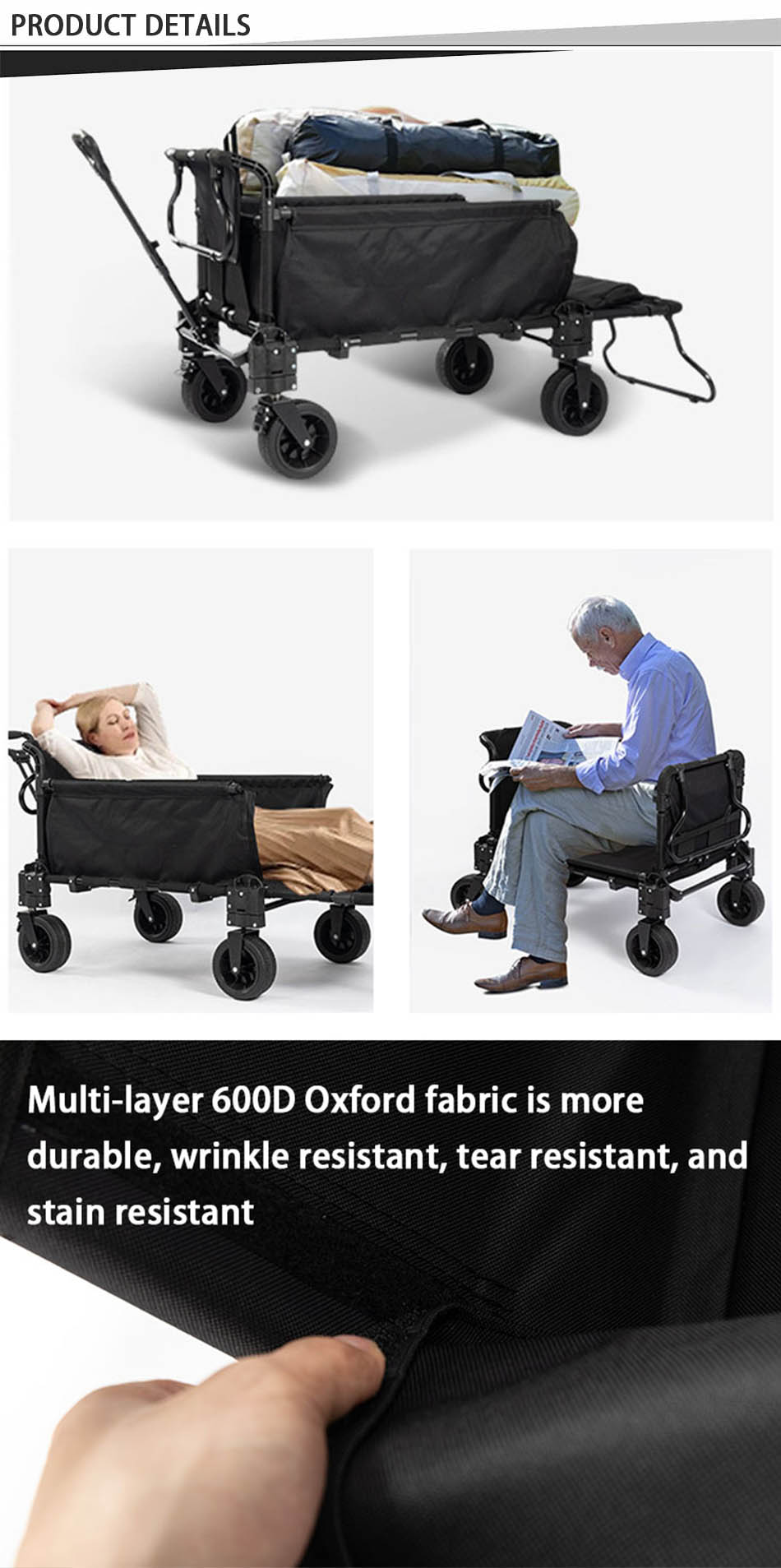 Produit : Ce chariot de magasinage à main multifonctionnel personnalisé se double d'un canapé-lit pliable et d'un chariot de wagon utilitaire, offrant une commodité, une durabilité et une polyvalence pour les activités de shopping, de voyage et de plein air.