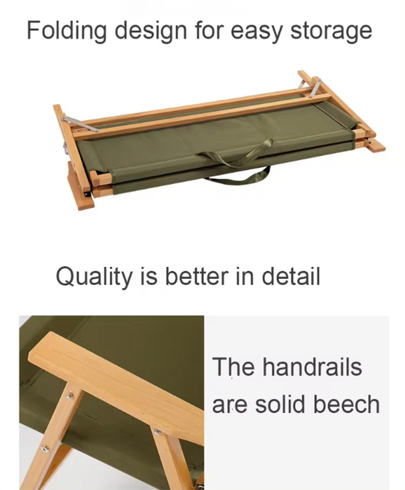 Marque : USINE ANHUI FEISTEL Fabrication de relations : OEM et ODM Produit : Cette chaise longue de camping pliable en bois est dotée d'un cadre robuste, d'une conception inclinable ergonomique et d'une structure pliante compacte, parfaite pour se détendre à la plage, au camping ou dans l'arrière-cour.