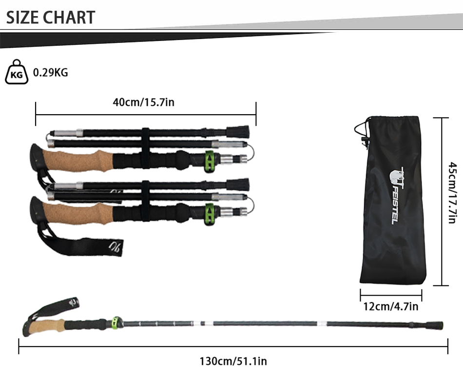 Bâtons de trekking pliables en carbone ultralégers