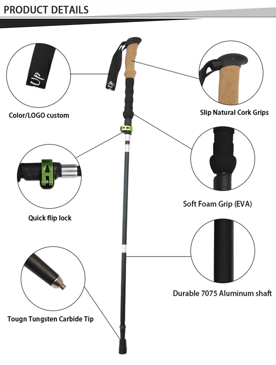 ce bâton de trekking est fabriqué en alliage d'aluminium 7075, qui est résistant à la corrosion et plus léger que les autres matériaux.