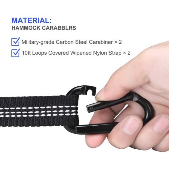 chaque ensemble de sangles pour hamac est non seulement très résistant, mais aussi super léger (0.85 lb au total). chaque ensemble comprend une valise assortie de haute qualité, facile à transporter et idéale pour les voyages de camping . nos bretelles peuvent être rapidement assemblées en 3 étapes faciles à comprendre. le kit comprend une carte d'information supplémentaire.D conçu pour les activités de plein air, chaque sangle mesure 2,5 cm de large et ne provoque pas de vibrations stimulantes par vent fort.