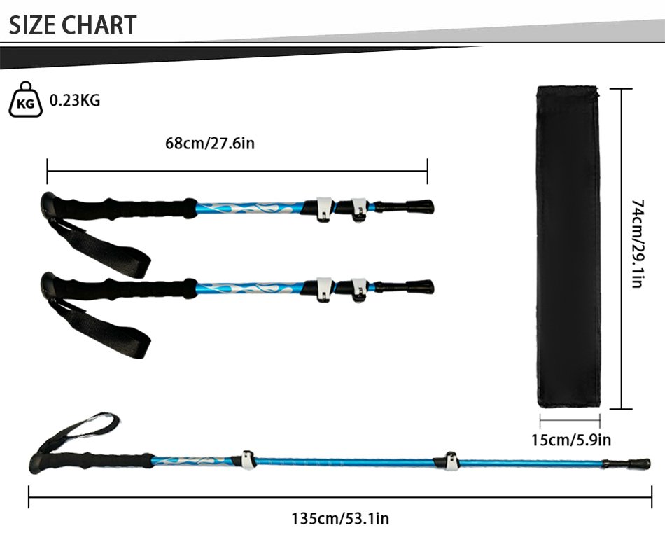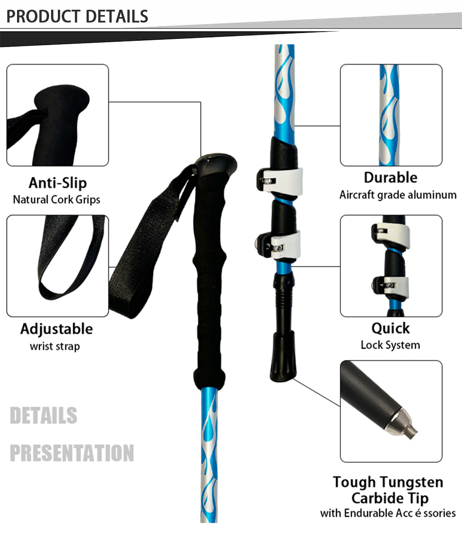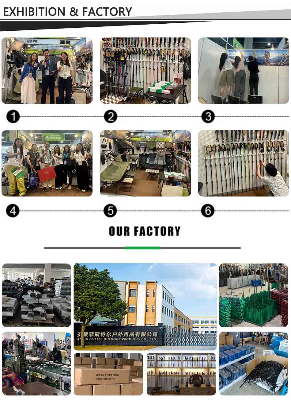 Marque : USINE ANHUI FEISTEL Fabrication liée : OEM et ODM Produit : Bâton de randonnée télescopique léger en aluminium 6013 : verrous à réglage rapide, durable, polyvalent, ergonomique, léger, idéal pour la randonnée, longueur personnalisable, solide.