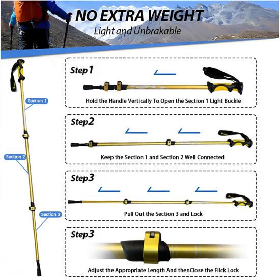 [compact et adapté aux voyages les bâtons de trekking peuvent être facilement rangés dans les bagages, sacs à dos et sacs polochons. ce bâton de trekking est également livré avec un protecteur de pointe en caoutchouc facile à ranger, connecteur de poteau et panier de boue. [modèle nouveau et amélioré ! les bâtons de course-trekking sont livrés avec des sangles rembourrées pour un maximum de confort et une prise en main ergonomique. il n'y a pas besoin de s'inquiéter de la chute du bâton de trekking.