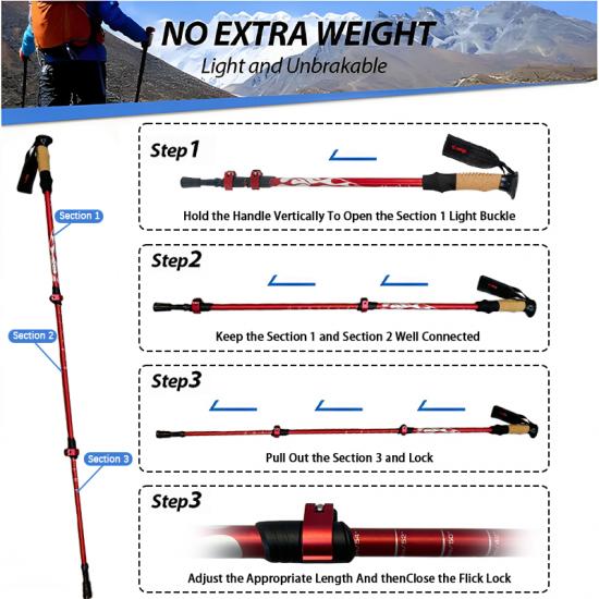 [compact et adapté aux voyages les bâtons de trekking peuvent être facilement rangés dans les bagages, sacs à dos et sacs polochons. ce bâton de trekking est également livré avec un protecteur de pointe en caoutchouc facile à ranger, connecteur de poteau et panier de boue. [modèle nouveau et amélioré ! les bâtons de course-trekking sont livrés avec des sangles rembourrées pour un maximum de confort et une prise en main ergonomique. il n'y a pas besoin de s'inquiéter de la chute du bâton de trekking.