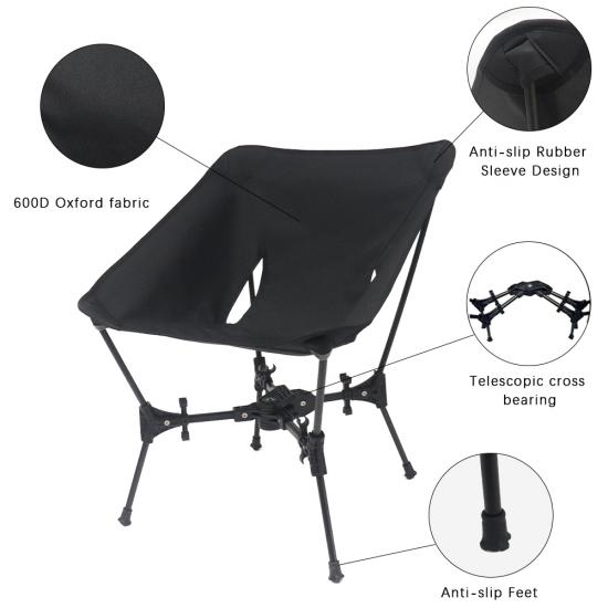 Produit : La chaise pliante ultra légère combine la portabilité et le confort avec un cadre en aluminium durable, une conception de la lune ergonomique, un pliage compact et une stabilité parfaite pour les aventures en plein air!
