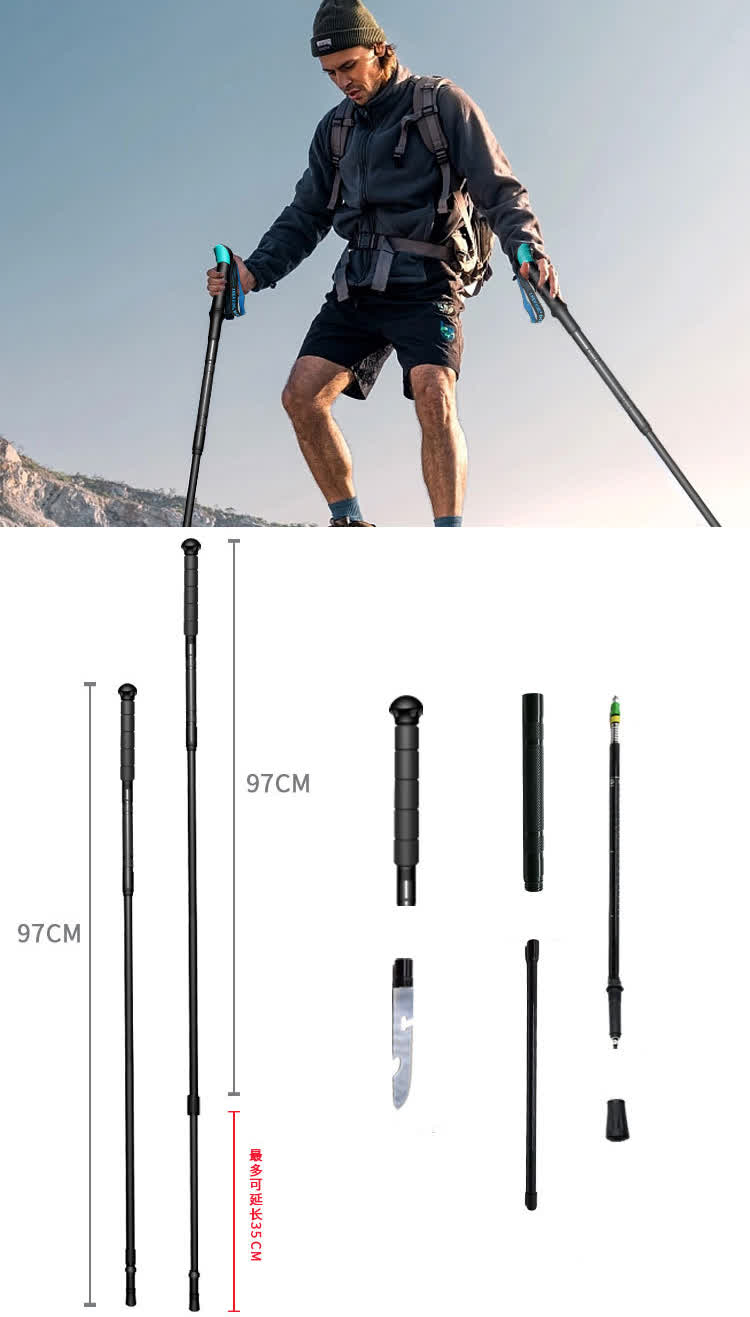 Équipement extérieur multifonctionnel de bâtons de randonnée et de ski légers