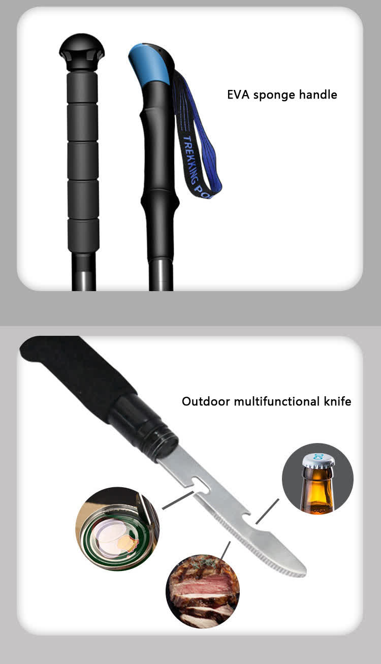 Le matériau du bâton de trekking peut être de l'aluminium 6061, de l'aluminium 7075 ou de la fibre de carbone 100% 3k