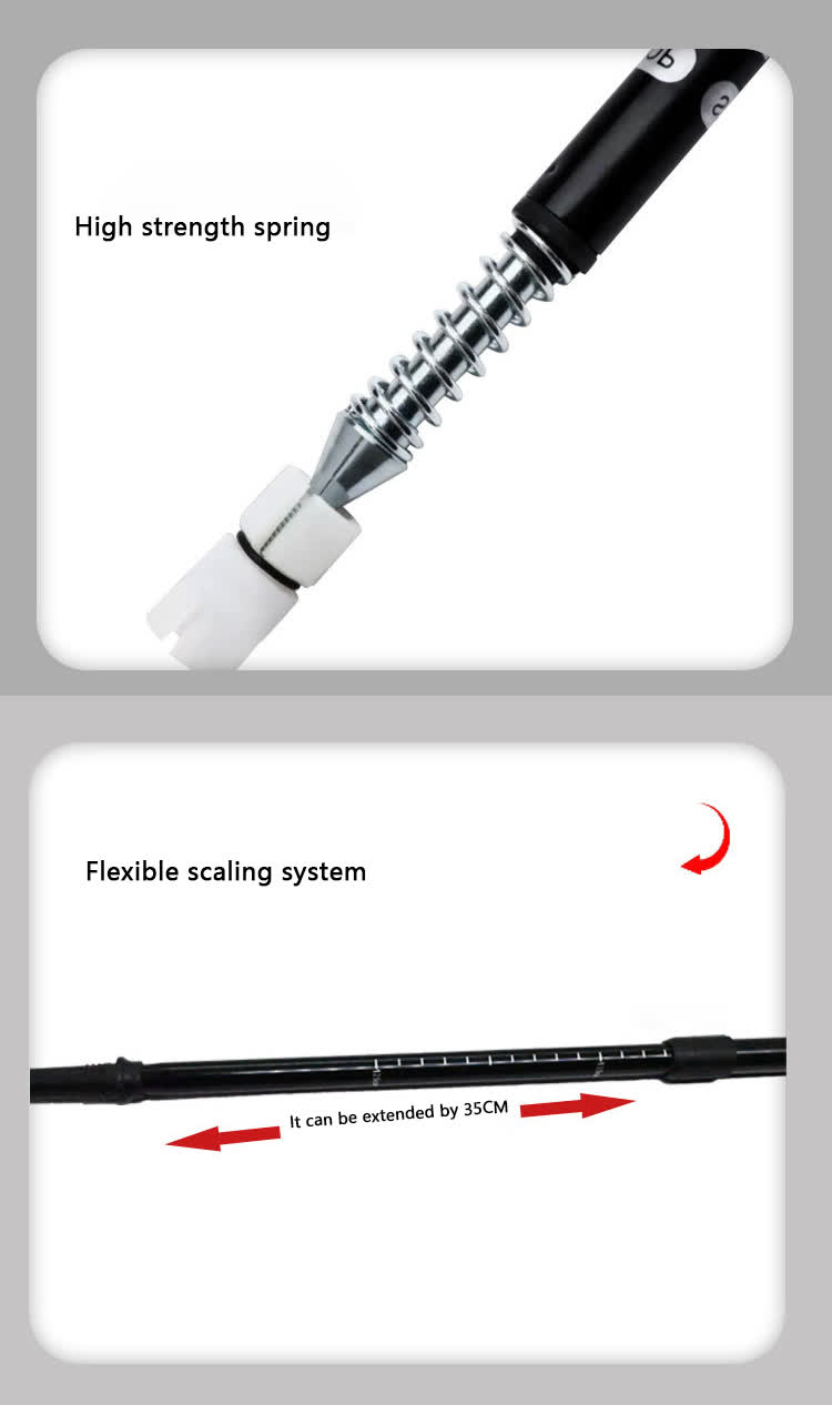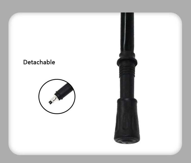 La poignée en aluminium de la canne est légère, sûre et durable. Différentes hauteurs peuvent être ajustées grâce aux boutons situés sur le poteau supérieur.