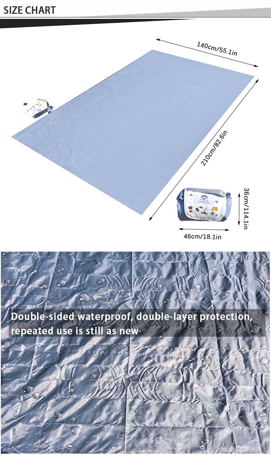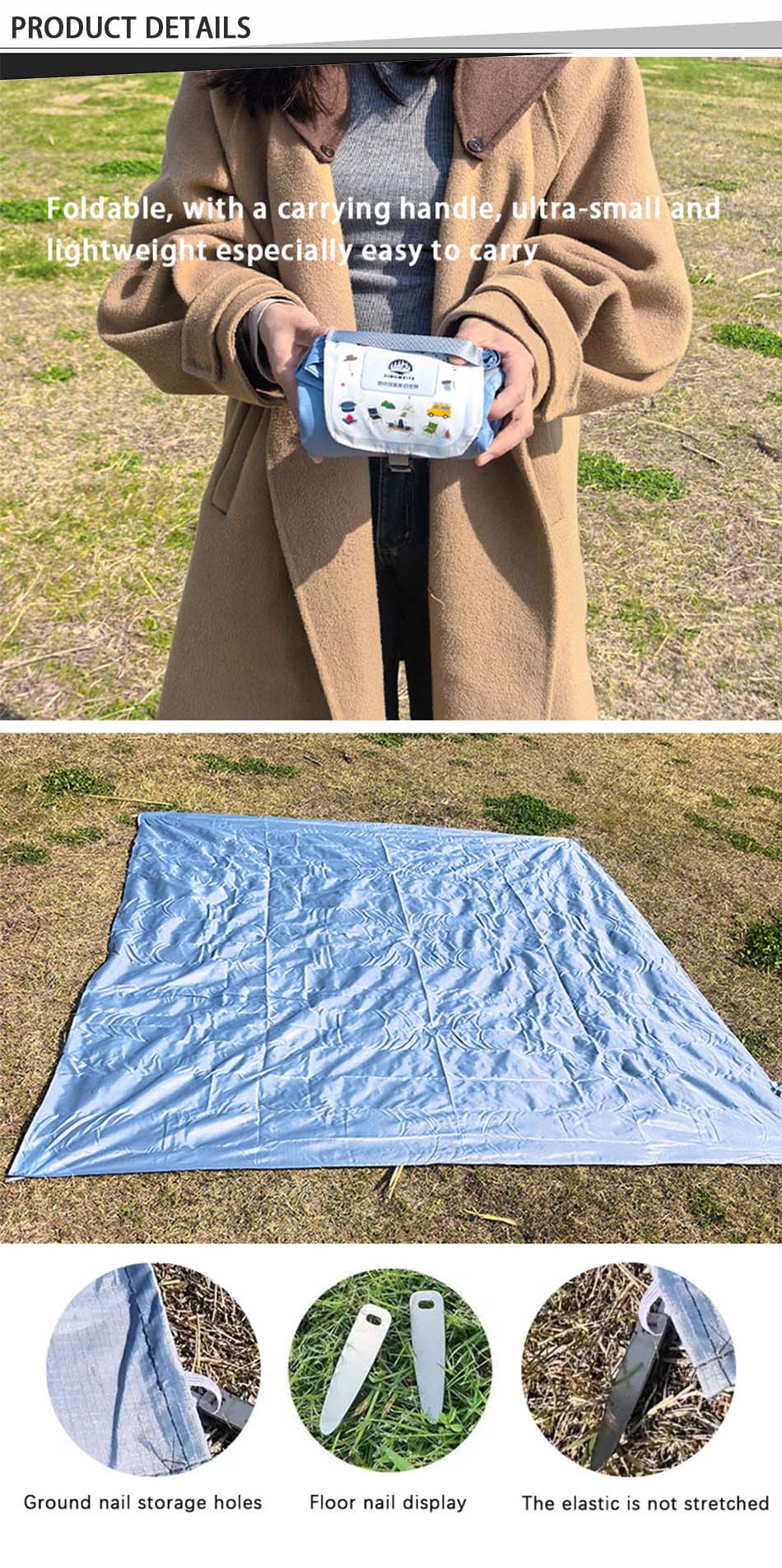 Marque : USINE ANHUI FEISTEL Fabrication de relations : OEM et ODM Produit : Ce grand tapis de pique-nique imperméable est parfait pour la randonnée, le camping ou la plage, avec des matériaux durables et des options d'impression personnalisées pour le confort et le style en extérieur.