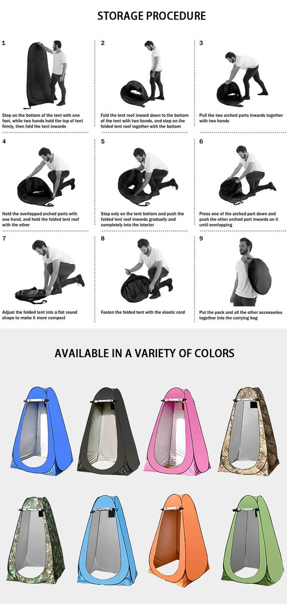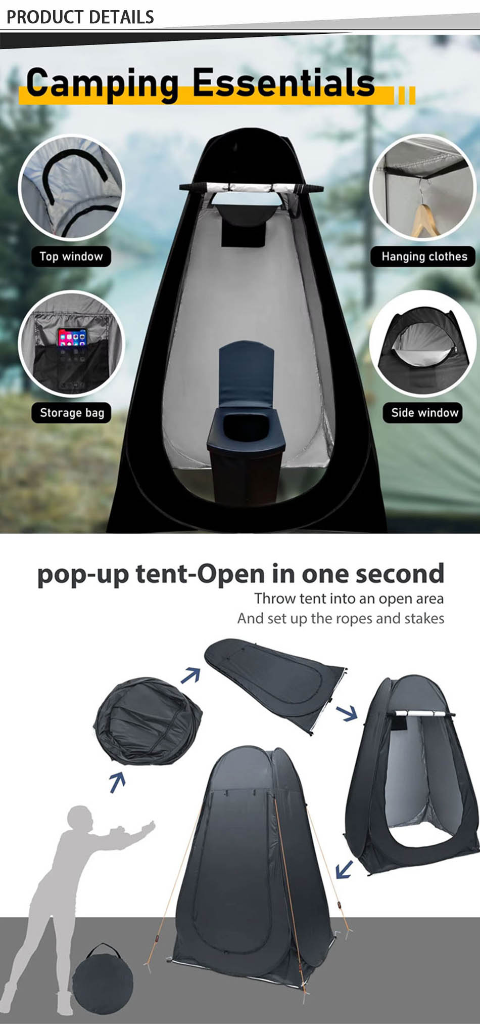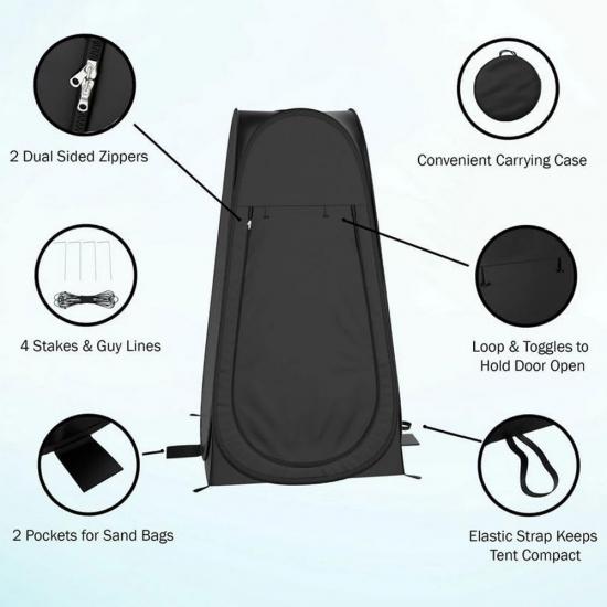 Produit : Cette tente de douche escamotable portable pour camping en plein air offre une intimité instantanée pour s'habiller, se changer ou être utilisée comme tente de toilette - légère, facile à installer et polyvalente.