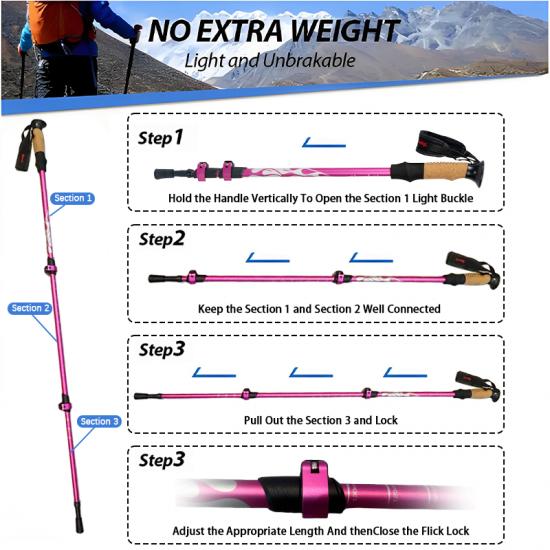 [compact et adapté aux voyages les bâtons de trekking peuvent être facilement rangés dans les bagages, sacs à dos et sacs polochons. ce bâton de trekking est également livré avec un protecteur de pointe en caoutchouc facile à ranger, connecteur de poteau et panier de boue. [modèle nouveau et amélioré ! les bâtons de course-trekking sont livrés avec des sangles rembourrées pour un maximum de confort et une prise en main ergonomique. il n'y a pas besoin de s'inquiéter de la chute du bâton de trekking.