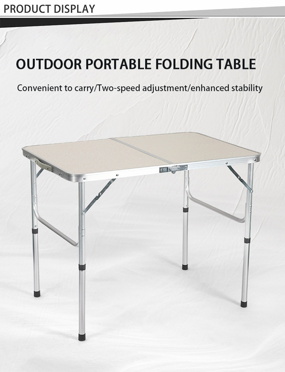 Produit : La table pliante portable en alliage d'aluminium est dotée d'une hauteur réglable et d'une utilisation multifonctionnelle, idéale pour les pique-niques en plein air, les journées à la plage, les barbecues, le camping et les voyages avec une configuration facile.