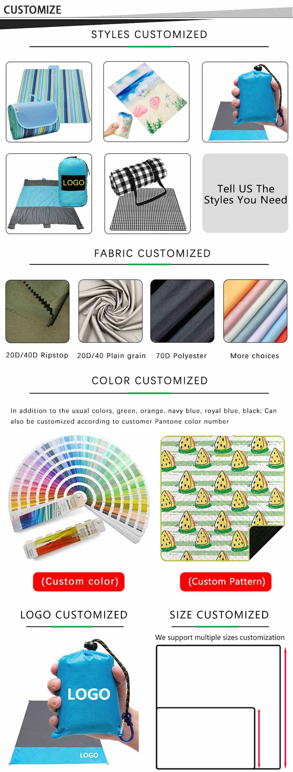 Marque : USINE ANHUI FEISTEL Fabrication de relations : OEM et ODM Produit : Ce grand tapis de pique-nique imperméable est parfait pour la randonnée, le camping ou la plage, avec des matériaux durables et des options d'impression personnalisées pour le confort et le style en extérieur.