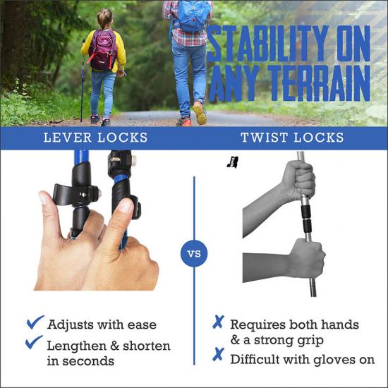 [compact et adapté aux voyages les bâtons de trekking peuvent être facilement rangés dans les bagages, sacs à dos et sacs polochons. ce bâton de trekking est également livré avec un protecteur de pointe en caoutchouc facile à ranger, connecteur de poteau et panier de boue. [modèle nouveau et amélioré ! les bâtons de course-trekking sont livrés avec des sangles rembourrées pour un maximum de confort et une prise en main ergonomique. il n'y a pas besoin de s'inquiéter de la chute du bâton de trekking.