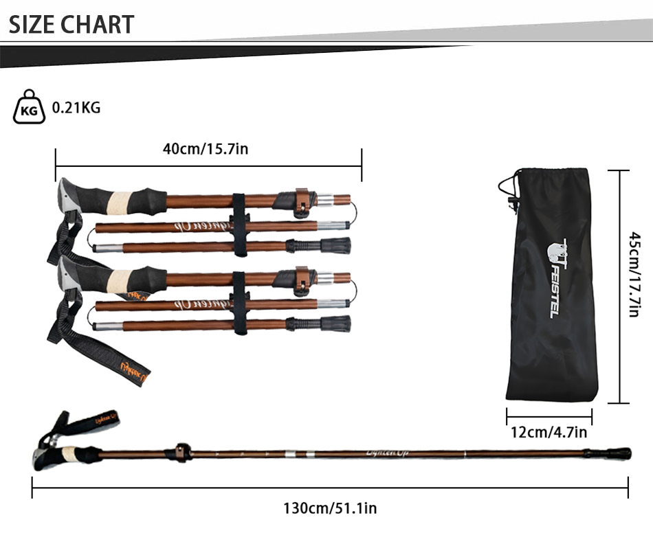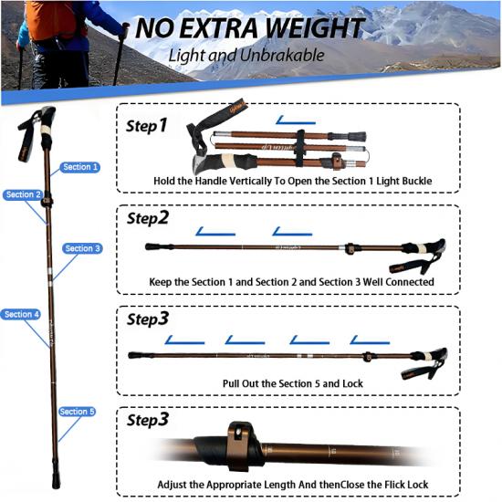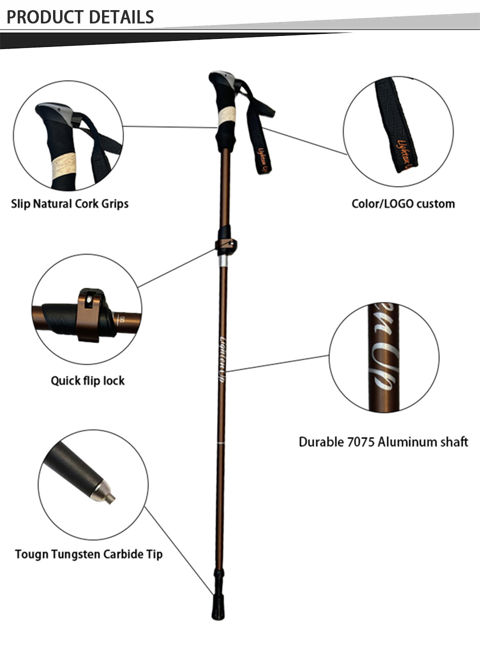 ce bâton de trekking est fabriqué en alliage d'aluminium 7075, qui est résistant à la corrosion et plus léger que les autres matériaux.
