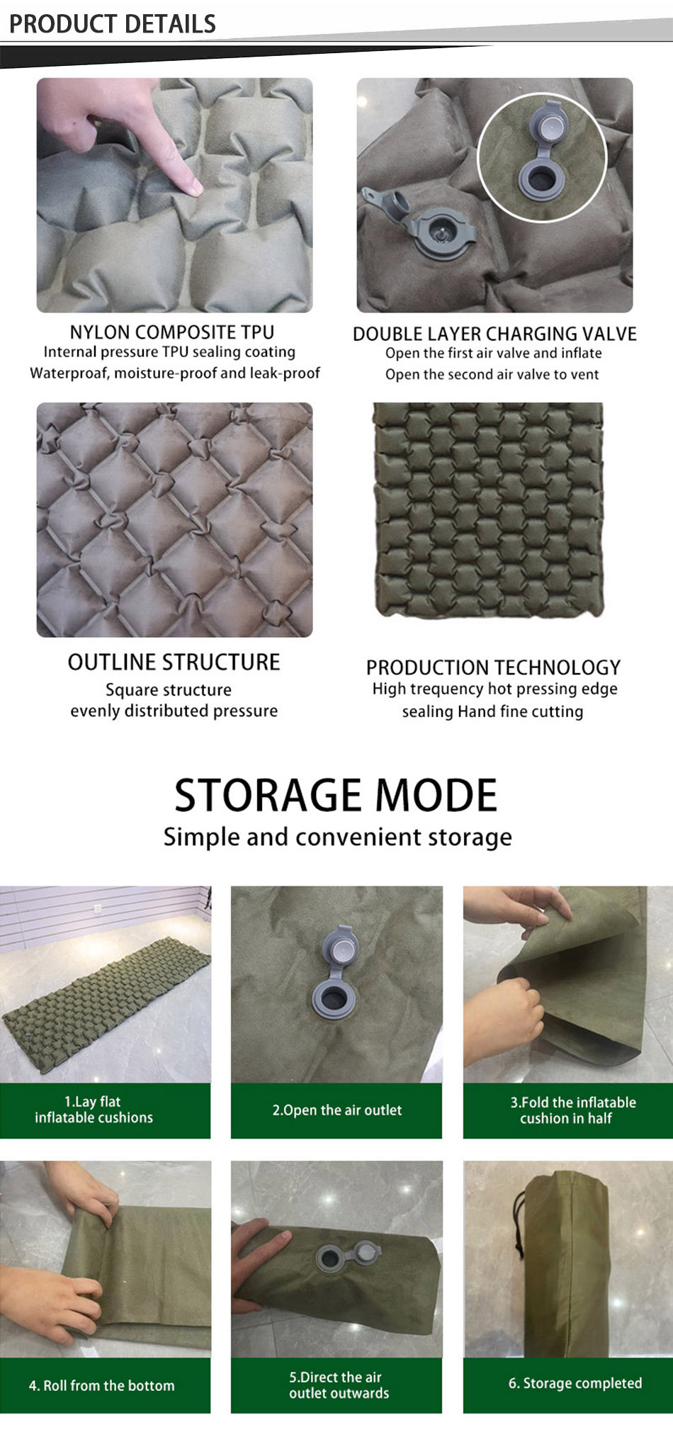 1.fait de matériaux durables et de haute qualité -nylon 40D tapis de camping pour l'extérieur. 2. durables 2'' tapis de camping d'épaisseur avec une excellente résistance à l'usure.