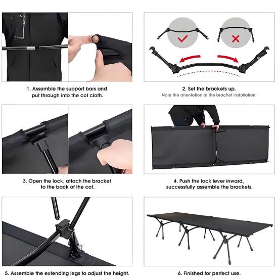 Lit de Camping Portable, lit de couchage d'extérieur à hauteur réglable, lit de voyage ultraléger et Compact